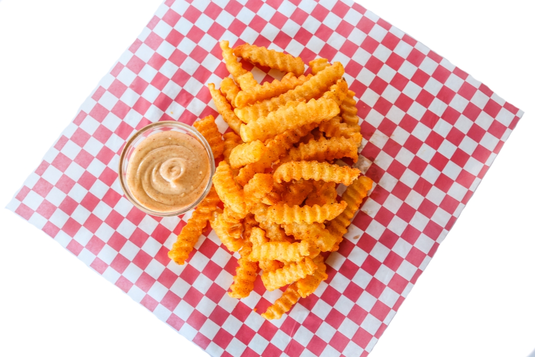 Boneless Chicken wings paired with seasoned krinkle kut fries